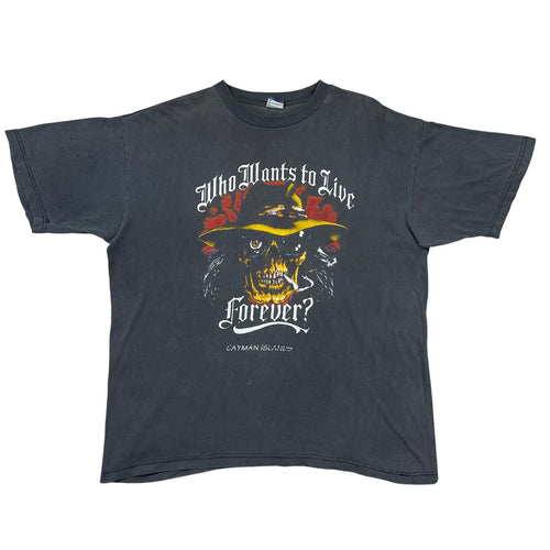 Vintage Who Wants To Live Forever Skeleton Cowboy Cayman Islands Tee